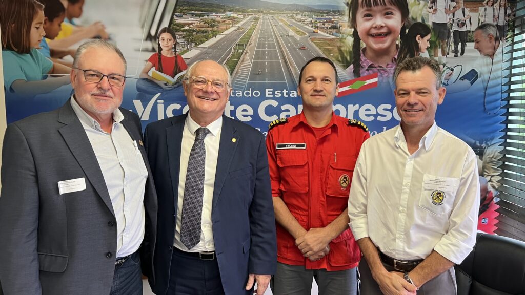 No CBMSC, o presidente Hudler foi recebido pelo comandante-geral, Coronel BM Fabiano Bastos das Neves; Tenente-Coronel BM Diogo de Souza Clarindo, chefe de gabinete do comando-geral; e o Coronel BM Jorge Artur Cameo, Corregedor-geral. O propósito da visita foi conhecer o novo comando, empossado em janeiro, e reforçar o papel da Abvesc no trabalho complementar ao dos militares na atividade de bombeiro urbano. “O nosso objetivo é reforçar os laços entre os dois modelos de serviço de bombeiro de Santa Catarina,” disse.