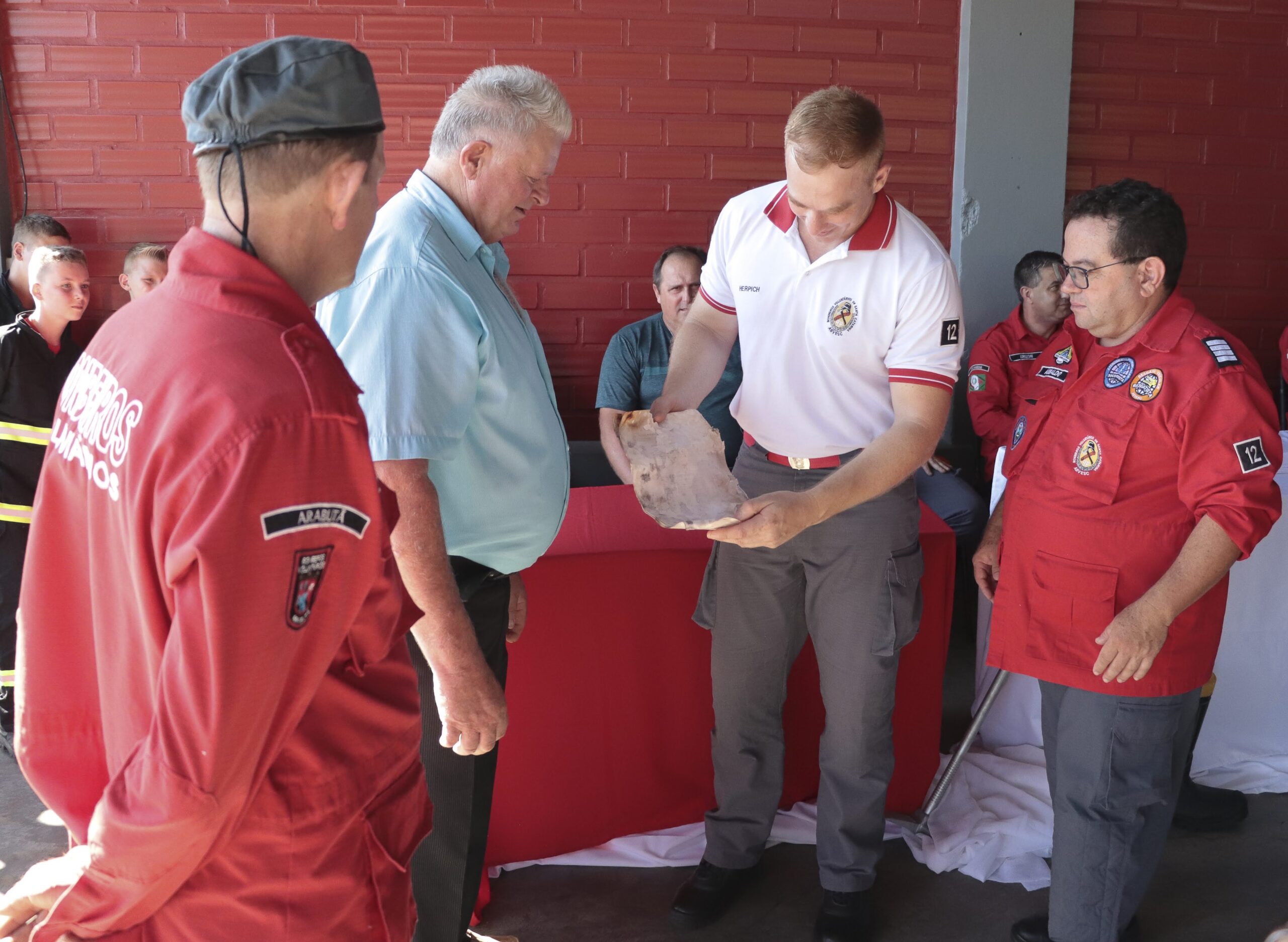 Como “presente de aniversário”, os Bombeiros Voluntários de Arabutã receberam itens adquiridos pela Associação dos Bombeiros Voluntários no Estado de Santa Catarina (ABVESC) com recursos do termo de fomento do governo do Estado (TR 1354/2023), como equipamentos de mergulho, capacetes para uso em combate ao fogo, rádio de comunicação e itens para o atendimento pré-hospitalar.