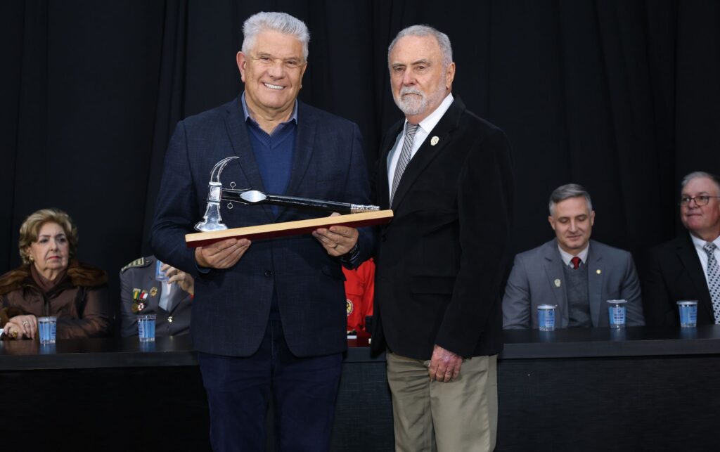 Ari Rabaiolli (à esq.), presidente do Badesc, representou o governador Jorginho Mello, o homenageado com a Ordem da Machadinha