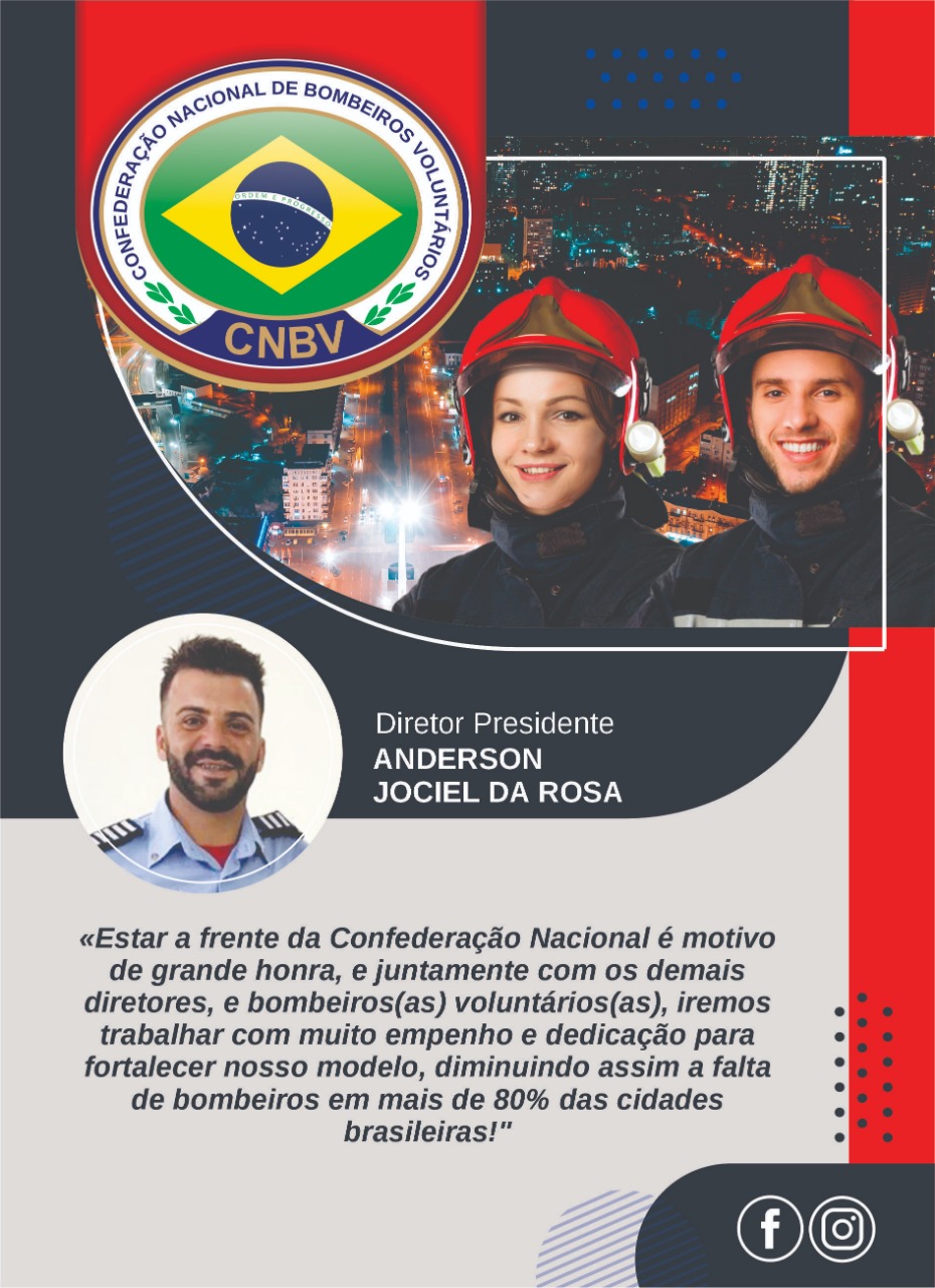 O presidente da Associação dos Bombeiros Voluntários do Rio Grande do Sul (Voluntersul), Anderson Jociel da Rosa, assumiu neste mês de março a presidência do Conselho de Administração da Confederação Nacional dos Bombeiros Voluntários (Conabov), com mandato até segundo semestre de 2023. O Conselho é formado por integrantes das associações de bombeiros voluntários do Rio Grande do Sul e Santa Catarina. A eleição ocorreu ainda no ano passado, quando começou a transição interna para e troca de comando.