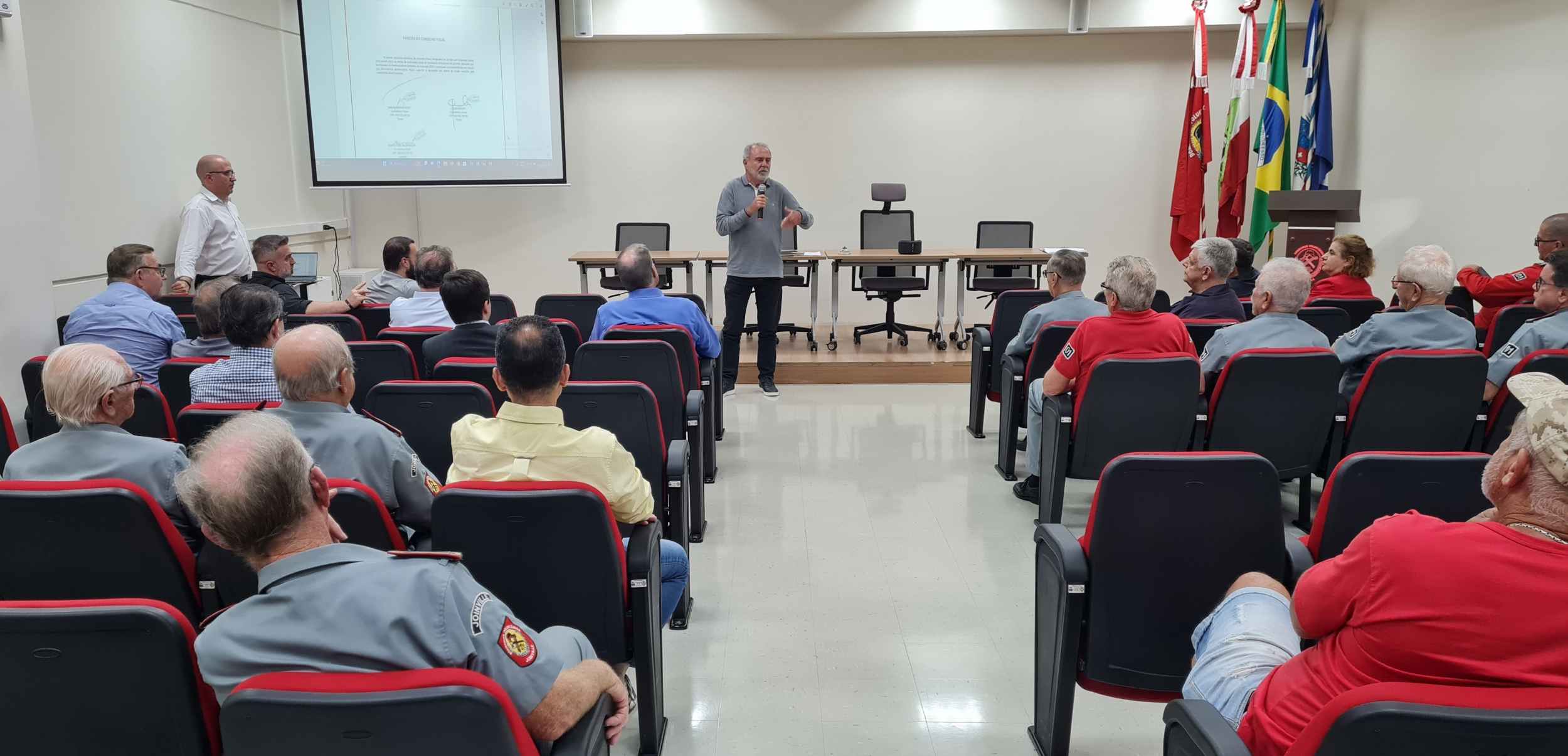 Aos participantes da assembleia nos Bombeiros Voluntários de Joinville, o presidente da Associação, Moacir Thomazi, ressaltou a evolução da estrutura de atendimento do Corpo de Bombeiros Voluntários (CBVJ) o que, segundo ele, é resultado da contribuição da comunidade, do trabalho dos bombeiros, da gestão da diretoria e da equipe de apoio administrativo.