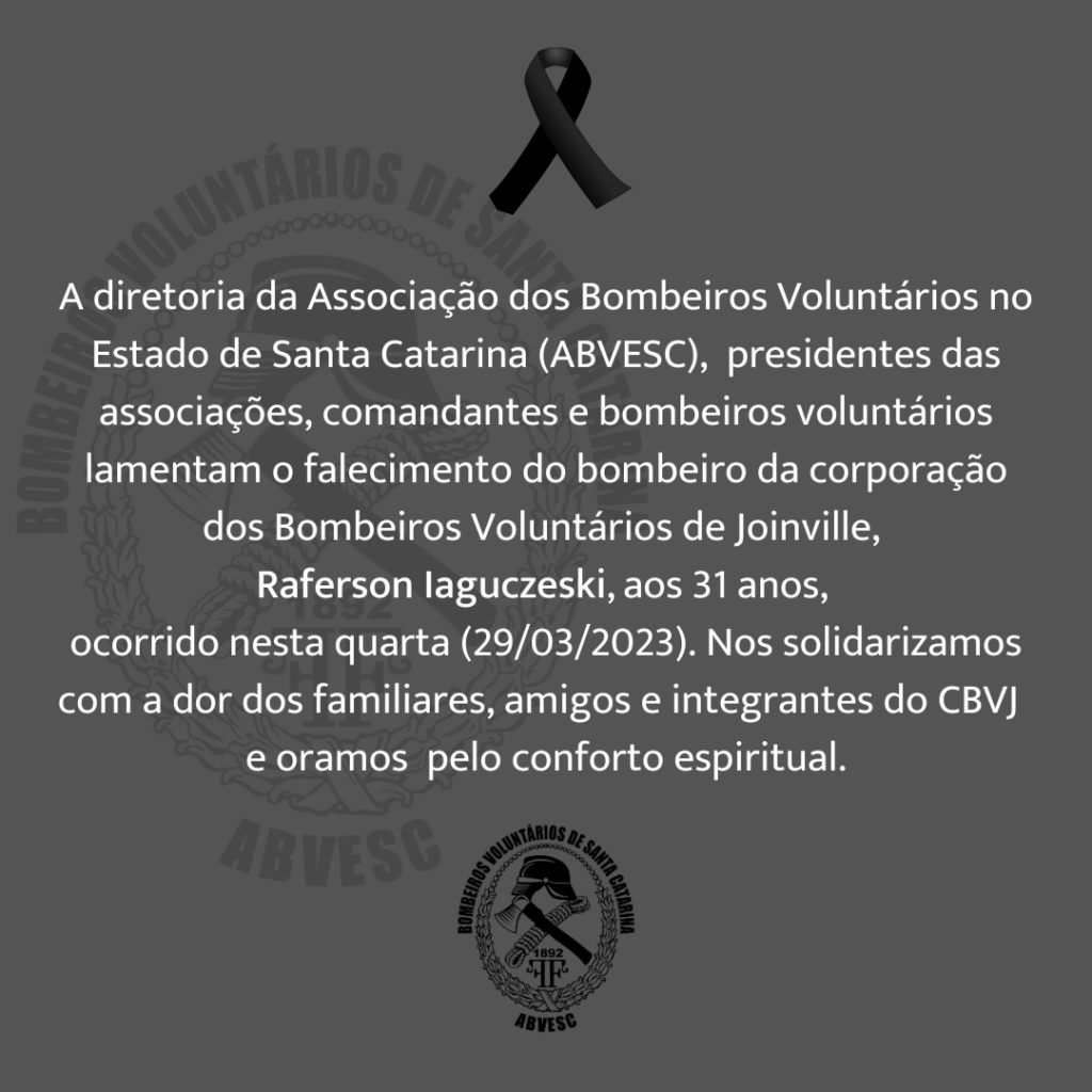 Nota de falecimento – Bombeiro da corporação de Joinville