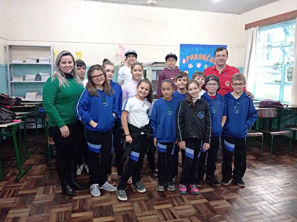 No mesmo dia, o Comandante da Corporação – Amarildo Molinari, realizou uma palestra para 40 alunos de uma Escola de Educação Básica, também no município de Presidente Getúlio – SC, além do tema primeiros socorros, outros foram discutidos com o grupo, como prevenção de acidentes, animais peçonhentos e como realizar o acionamento dos bombeiros voluntários em caso de emergência.